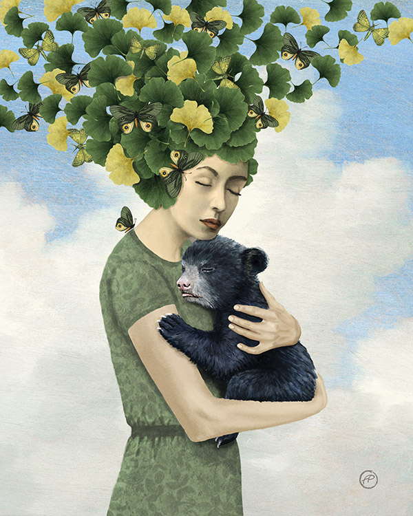 This painting was born from the above related knowledge of the cruelty against bears and from the need to find a way to protect them. For the moment, I don’t know how they can be helped, I feel powerless in this regard. Until the humanity will make a conscience shift, if ever, this kind of practices will still exist. And I, as heartbroken as I am knowing this awful truth, I must accept cruelty as a innate part of our souls, a trait of our species and continue to live as beautifully as I can and do what is in my power. Today, a painting. May this raise some awareness to somebody, bring joy to others and, maybe, just maybe, the love and the good, caring thoughts I have put in it could somehow, bring some relief to the bears in need.